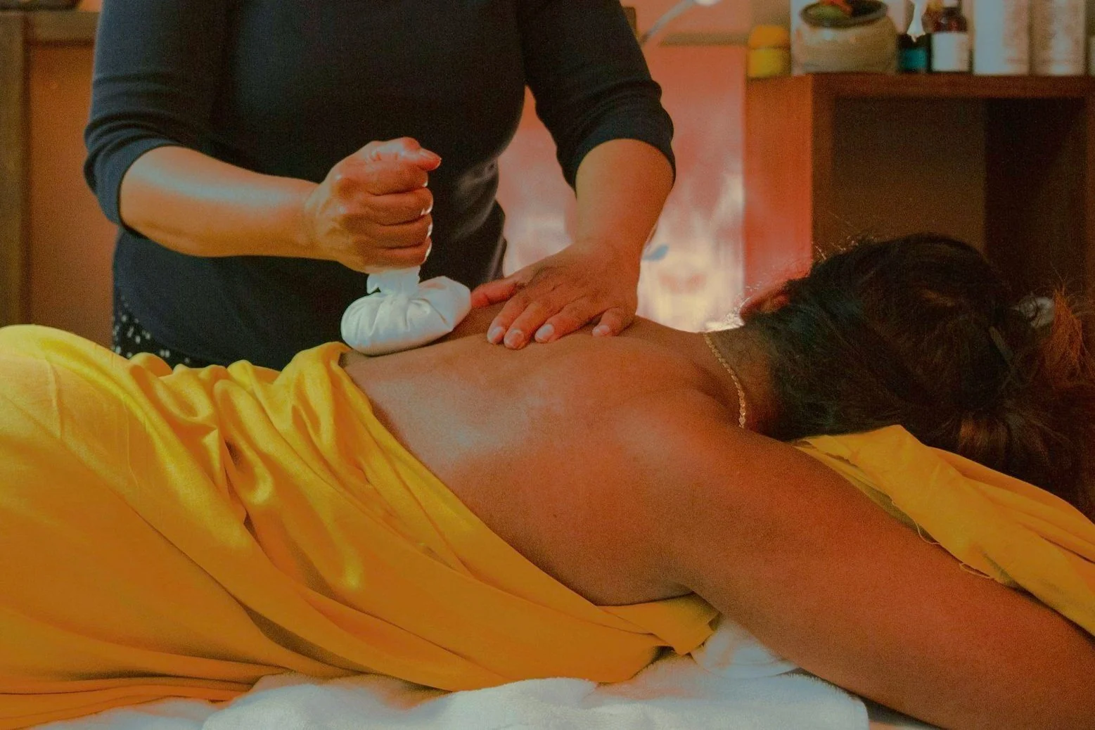 Op de massagetafel worden je rug, benen, armen, schouders en nek gemasseerd met trage, vloeiende bewegingen. Daarbij gebruik ik verwarmde kruidenstempels: bundeltjes gevuld met een mengsel van kruiden volgens traditioneel Thais recept. De warmte en geur van de stempels helpen je spieren te ontspannen, stimuleren de doorbloeding en geven je immuunsysteem een boost. De kruidenstempels brengen niet alleen rust, maar helpen ook spanningen los te laten en kleine kwaaltjes te verlichten. De warmte trekt diep in je lichaam, waardoor je makkelijker ontspant en echt tot jezelf komt.